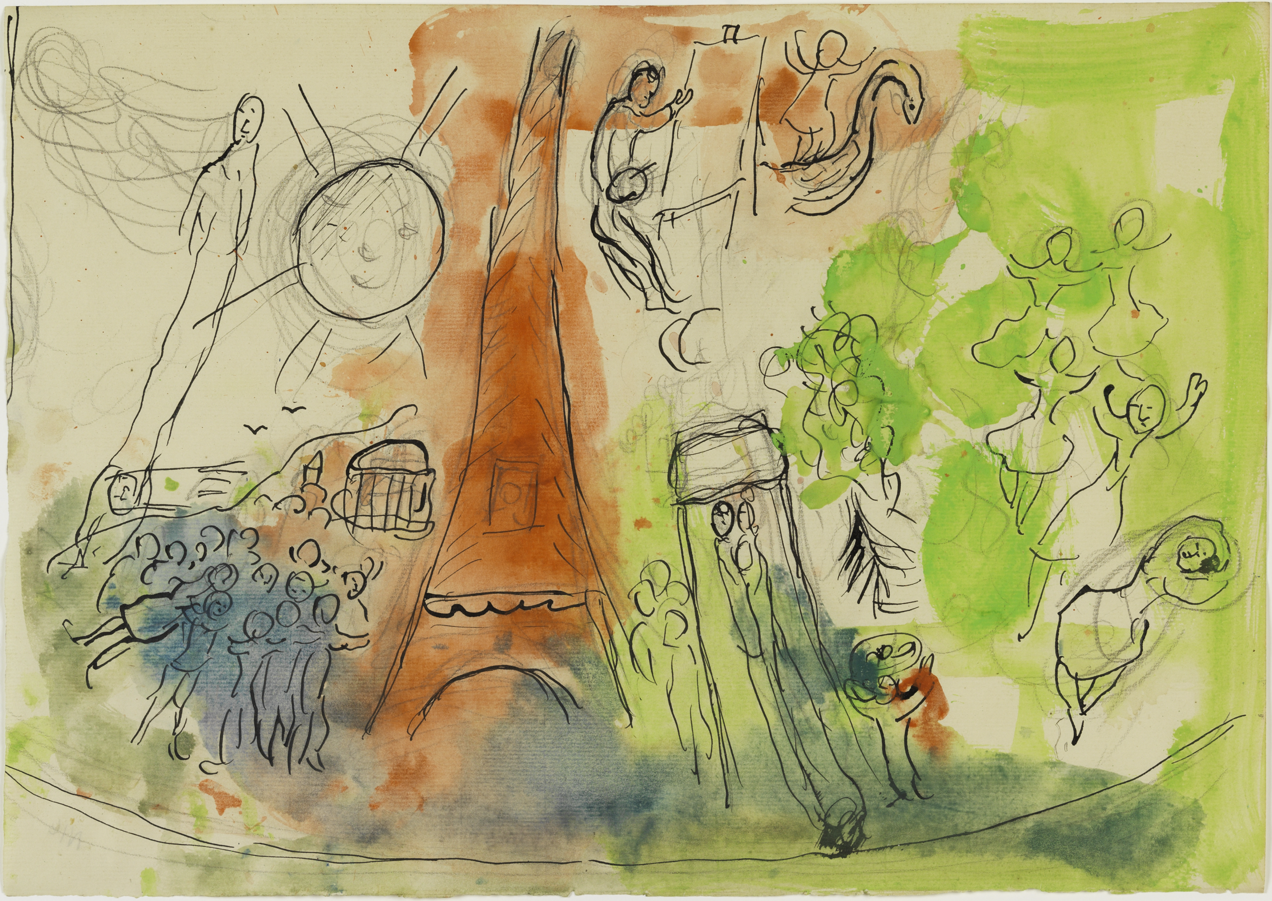 photo : Marc Chagall, maquettes préparatoires pour le plafond de l’Opéra, Garnier, gouache, pastel, crayon de couleur, crayon noir, encre de Chine, collages 1963