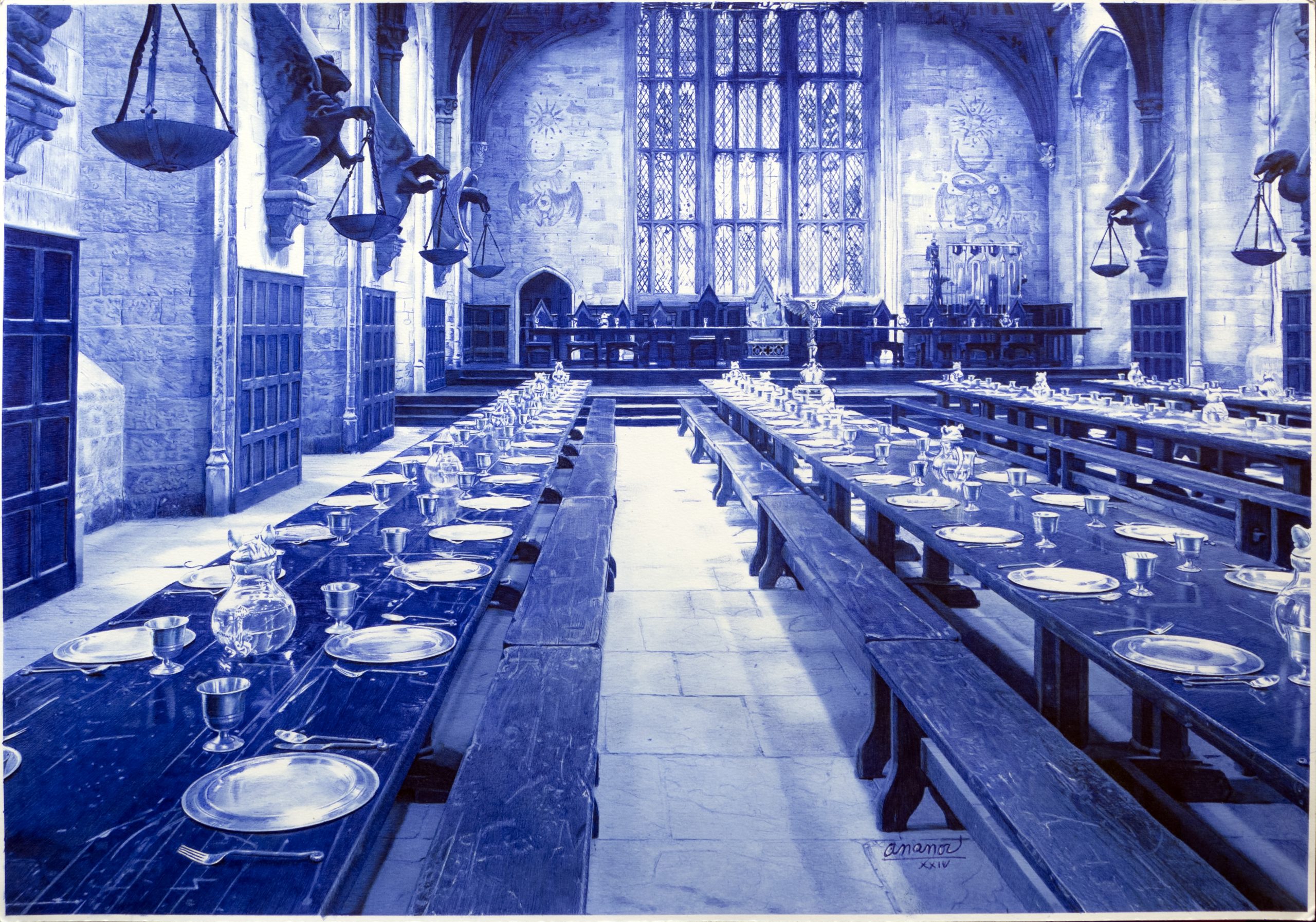 Un jour, alors qu’il pensait tourner en rond dans sa peinture, nous dit-il, « j’ai découvert le stylo à bille et je suis tombé dedans« . Depuis 5 ans, il n’arrête plus, au rythme de 4h par jour. Il a mis plus de 8 mois pour maîtriser cette technique qui semble assez complexe. « Le stylo bille a une importance capitale. Quand j’étais jeune, on m’a enlevé la plume pour me donner un stylo Bic bleu, parce qu’il n’y avait que ça. Aujourd’hui, ce n’est pas une madeleine de Proust, mais c’est presque ça. Quand je me remets à mon bureau pour dessiner avec mon stylo Bic, je vois toute ma jeunesse… »