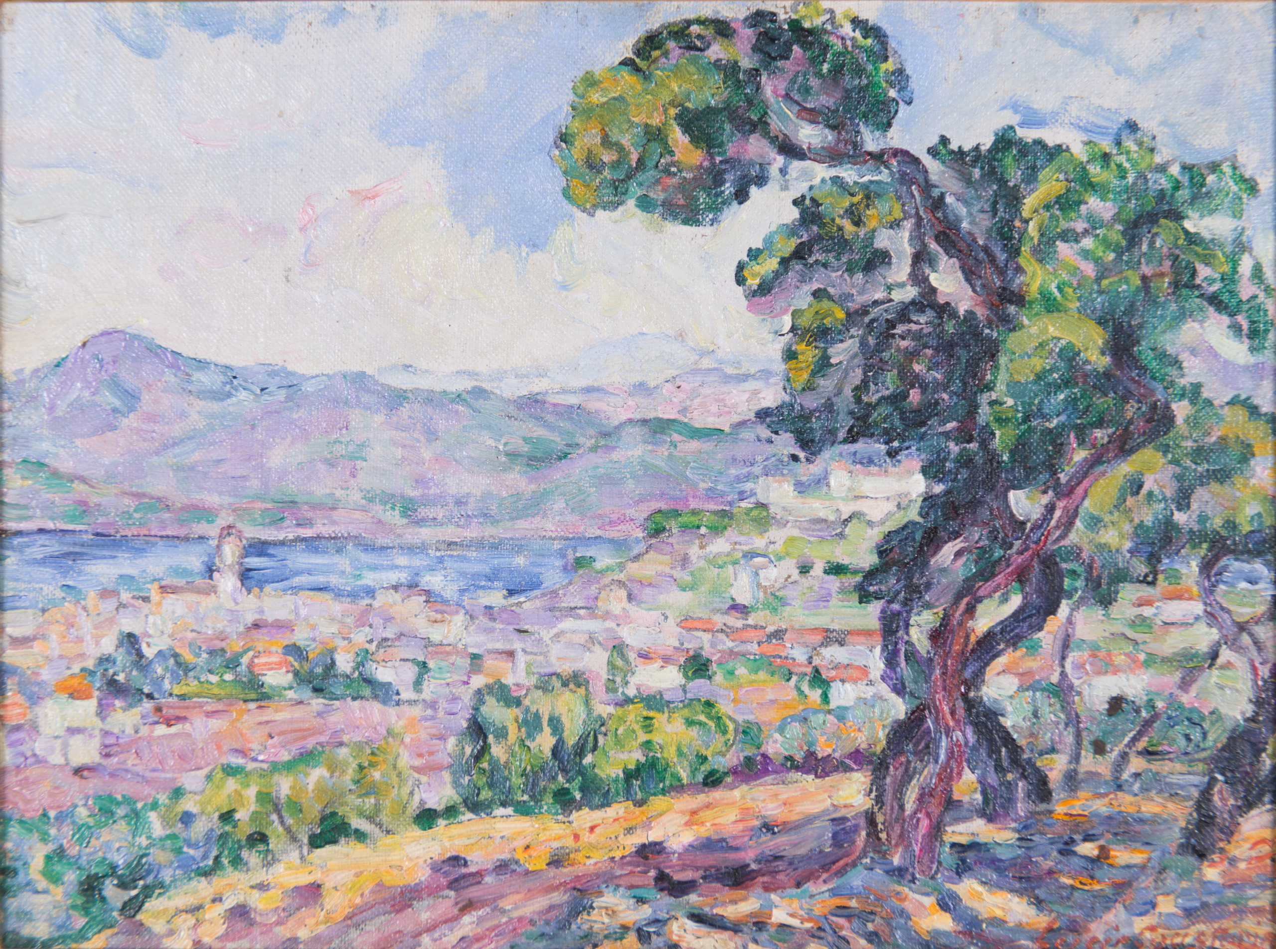 Formée dans l’atelier de Paul Signac, Lucie Cousturier (1876-1925) participe régulièrement au Salon des Artistes Indépendants à Paris. Si elle adopte les principes du divisionnisme, elle développe rapidement un style personnel : d’abord très rigoureuse, sa touche gagne en souplesse et en ampleur, évoluant vers des aplats de couleurs vibrantes, posés en touches fragmentées.