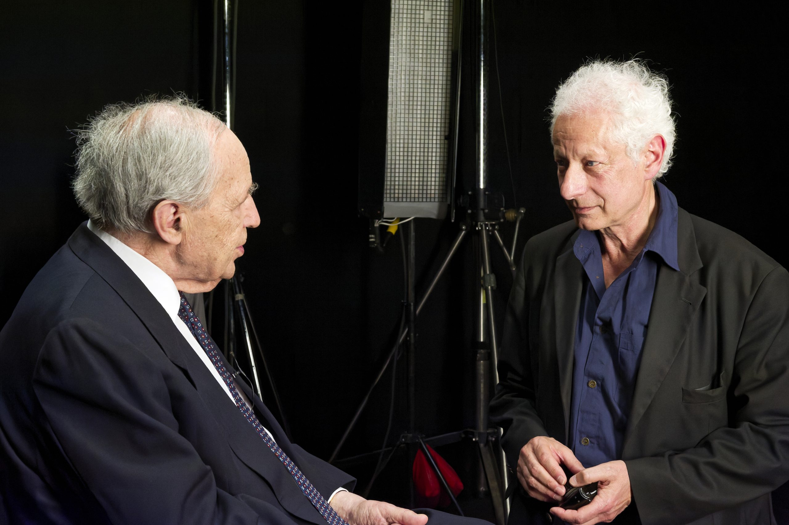 photo : Pierre Boulez et Robert Cahen sur le tournage de Le Maître du temps © Nicolas Fussier